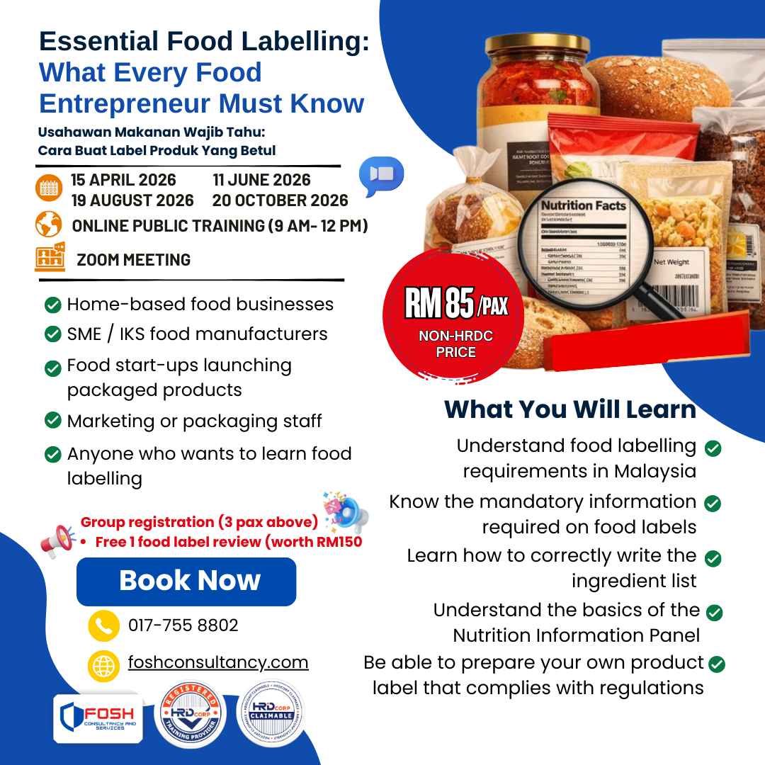Food labeling is essential for all food products. In Malaysia, there are specific regulations governing food labeling. Producers must adhere to the Food Regulations 1985 when creating product labels. Starting from 2024, with the recent amendments, enforcement actions can be taken against industry who fails to comply with the updated regulations.