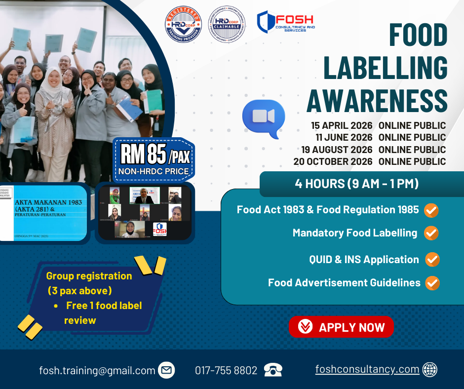 Food Product Labelling Training according to Food Act 1983 & Food Regulation 1985.